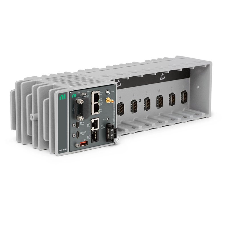 The cRIO-9048 is a rugged, high-performance, customizable embedded controller that offers Intel Atom dual-core processing, NI-DAQmx support, and an SD card slot for data-logging, embedded monitoring, and control. It includes a Kintex-7 160T FPGA with LabVIEW FPGA Module support for advanced control and coprocessing. The controller provides precise, synchronized timing and deterministic communications using Time Sensitive Networking (TSN), which is ideal for highly distributed measurements. This controller offers several connectivity ports, including Gigabit Ethernet, USB 3.1, USB 2.0, RS232, and RS485 ports. You can use the USB 3.1 ports to add a local human machine interface and program, deploy, and debug software, which simplifies application development.