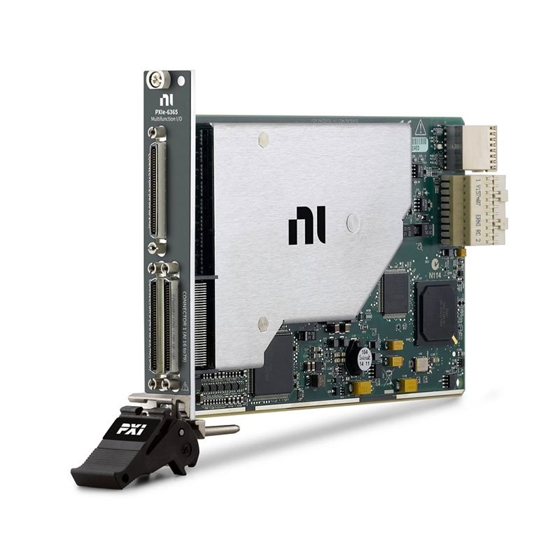 The PXIe‑6365 offers analog I/O, digital I/O, and four 32‑bit counter/timers for PWM, encoder, frequency, event counting, and more. The device delivers high-performance functionality leveraging the high-throughput PCI Express bus and multicore-optimized driver and application software. Onboard NI‑STC3 timing and synchronization technology delivers advanced timing functionality, including independent analog and digital timing engines and retriggerable measurement tasks. The PXIe‑6365 is well-suited for a broad range of applications, from basic data logging to control and test automation. The included NI‑DAQmx driver and configuration utility simplify configuration and measurements.