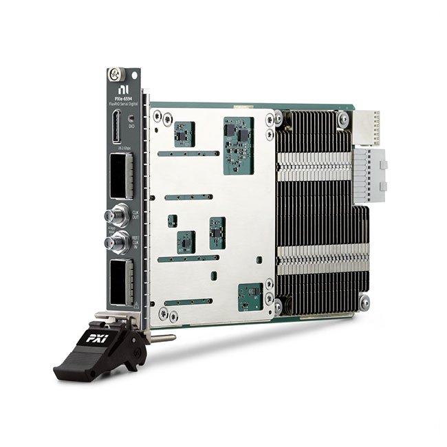 The PXIe-6594 is designed for engineers who need to validate, interface through, and test serial protocols. It includes a Xilinx Kintex Ultrascale+ FPGA to implement various high-speed serial protocols, and it is programmable in LabVIEW FPGA for maximum application-specific customization and reuse. The PXIe-6594 takes advantage of FPGA multigigabit transceivers for up to eight TX and RX lanes.