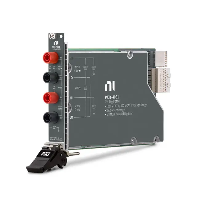 The PXIe-4081 Digital Multimeter (DMM) is a high-precision digital multimeter for PXI Express systems, designed for accurate voltage, current, and resistance measurements. It is suitable for applications that require high accuracy, repeatability, and automated measurement.