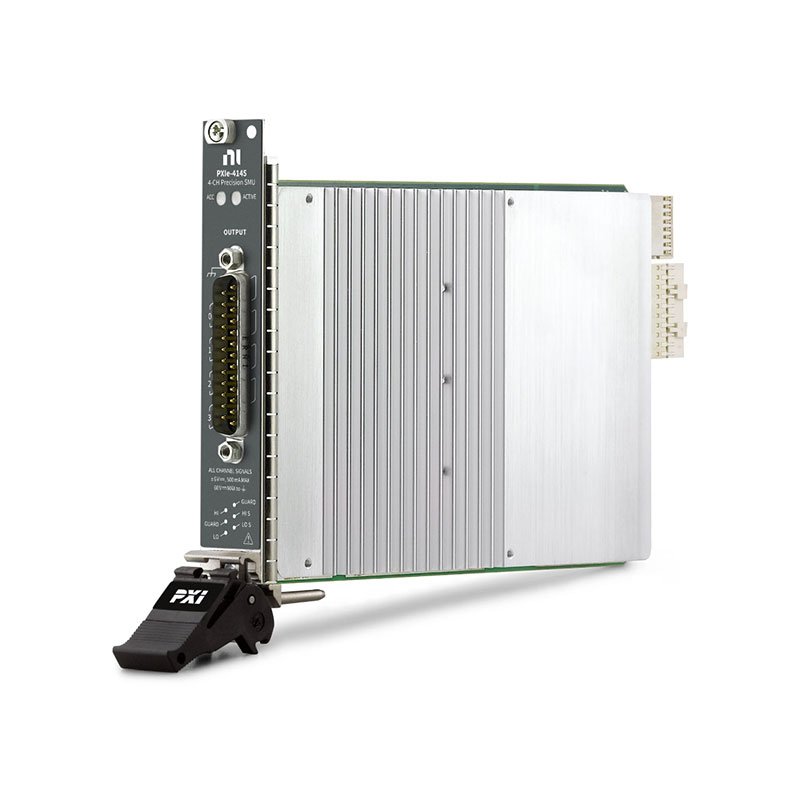 The PXIe-4145 is a 4-channel source measure unit (SMU) ideal for high-pin-count applications. It features 4-quadrant operation, and each channel has integrated remote (4 wire) sensing for accurate measurements. The fast sample rate of the PXIe-4145 can reduce measurement times, capture transient device characteristics, and allow quick I V characterization of devices under test (DUTs). With a high-speed sequencing engine, you can synchronize all these SMUs with each other or with other instruments such as switches or high-speed digital test modules. Additionally, you can tune the PXIe-4145 response to any load to achieve optimum responses with maximum stability and minimum transients using SourceAdapt technology.