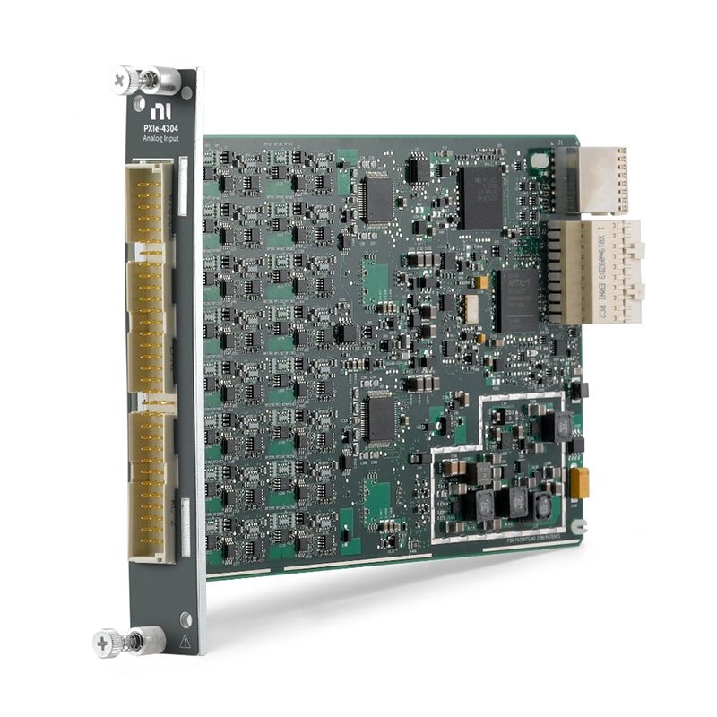 The PXIe‑4304 is a filtered analog input module for higher voltage measurements. The module offers the ability to select a digital filter per channel to provide extra filtering performance. You also can operate up to four different sample rates and triggering configurations concurrently to ensure you measure every sensor as needed. The module has an A/D converter per channel to enable a simultaneous sample rate at the maximum sample rate across the input range. The included NI‑DAQmx driver simplifies hardware configuration and measurement.