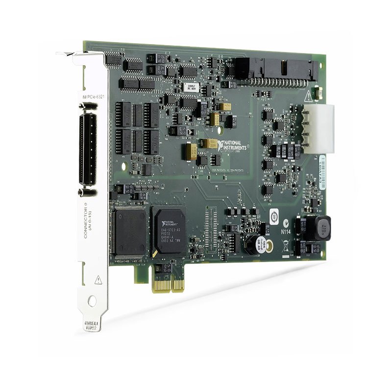The PCIe‑6321 offers analog I/O, digital I/O, and four 32‑bit counters/timers for PWM, encoder, frequency, event counting, and more. The device delivers high-performance functionality leveraging the high-throughput PCI Express bus and multicore-optimized driver and application software. Onboard NI‑STC3 timing and synchronization technology delivers advanced timing functionality, including independent analog and digital timing engines and retriggerable measurement tasks. The PCIe‑6321 is well suited for a broad range of applications, from basic data logging to control and test automation. The included NI‑DAQmx driver and configuration utility simplify configuration and measurements.