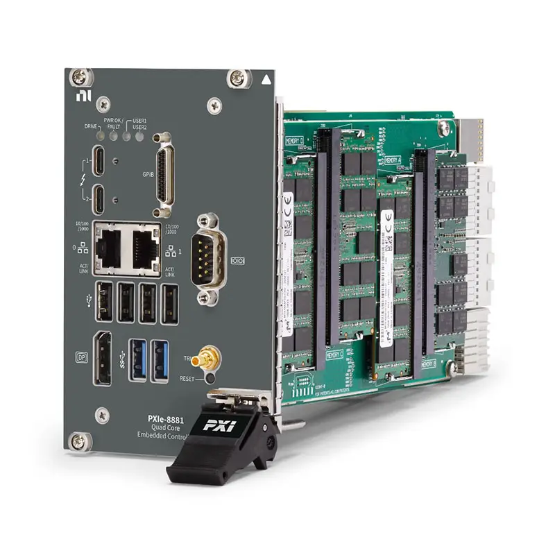 PXIe-8881 serves as the central controller in high-end PXIe systems, managing communication between multiple high-speed modules and executing complex test sequences with minimal latency.